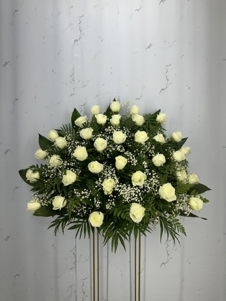 Composición en centro elegante de 36 rosas blancas.