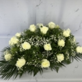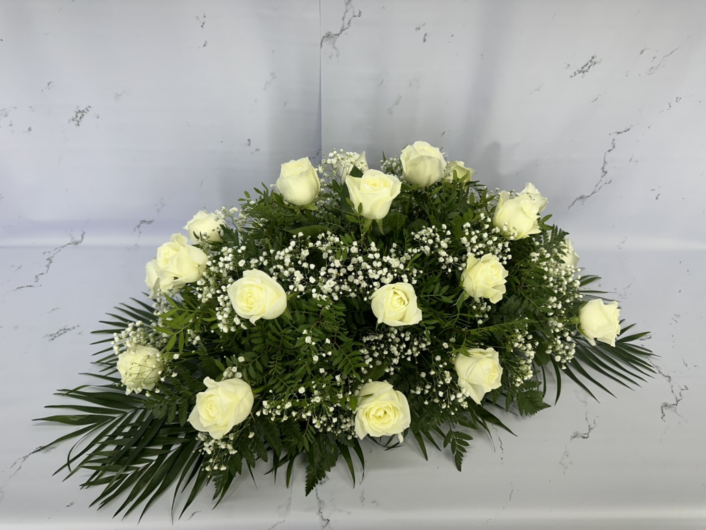 Composición en palma elaborada de 24 rosas blancas.