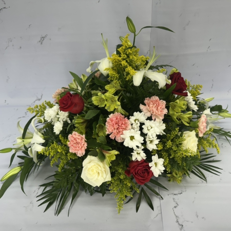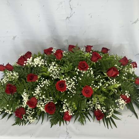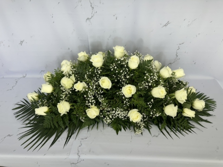 Composición en palma elaborada de 36 rosas blancas.